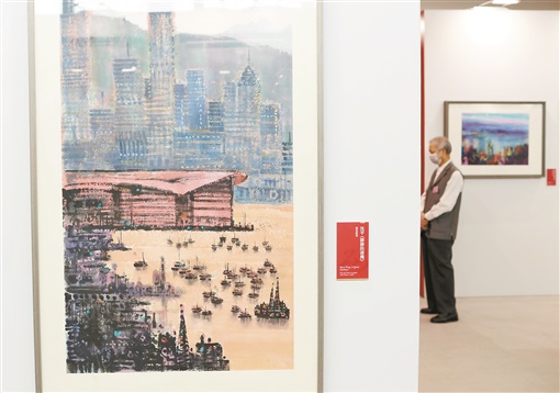 此外,表现粤港澳大湾区建设成就的港珠澳大桥、狮子山下传统与现代结合的建筑、香港城市的美丽风景、朵朵绽放的紫荆花……包含这些与港人生活密切相关元素的画作也是本次展览的一大亮点。