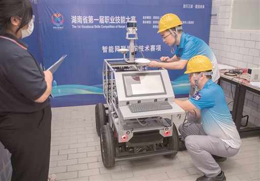 图① 7月3日,参赛选手在进行智能网联汽车技术(双人赛)竞赛。