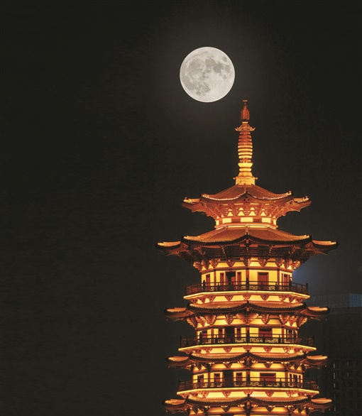 7月13日晚,长沙洋湖国家湿地公园,“超级月亮”与白鹭塔唯美同框。继6月14日之后,“超级月亮”当天再次现身,这轮“超级月亮”是今年诸多满月当中最大的一个。