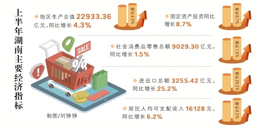 今年上半年,全省上下高效统筹疫情防控和经济社会发展,大力推进“三大支撑八项重点”工作,落实落细稳经济一揽子政策措施,深入开展“万名干部联万企”行动,政策效应较快显现,全省生产需求稳步回升,发展动能不断增强,社会民生持续改善,经济运行总体平稳、稳中向好,基本实现“双过半”目标任务,为全国稳住经济大盘作出了湖南积极的贡献。