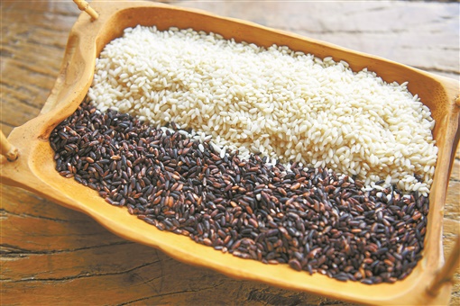 用紫鹊界贡米煮饭也有讲究。“用象牙白和紫香米混搭着煮,营养更丰富,口感更佳。”邹碧波说,喜欢香糯味道的就多加一点象牙白,喜欢吃硬和糙一点的就多加一点紫香米。