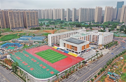 7月19日,中建五局承建的麓山国际第二实验小学项目已基本建成,预计本月底交付使用。该校是湖南湘江新区观沙岭城市更新片区首开项目,也是长沙首个启用学生接送系统的小学。学校用地面积约48.9亩,规划办学规模为48个班,能够提供2400个小学学位,满足片区适龄儿童的就学需求。 湖南日报全媒体记者 田超 通讯员 赵悦 摄影报道