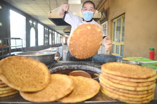 7月18日,新城西门村,村民在吐鲁番馕文化产业园打馕。湖南援建的馕文化产业园不仅让村民实现了在家门口就业,还成为吐鲁番旅游的网红打卡点。 |