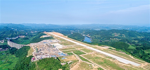 7月24日,花垣县花垣镇老天坪村,湘西边城机场航站楼建设现场一派繁忙。今年以来,该机场指挥部及机场公司咬定“年内建成首飞”目标,开展“比进度、比质量、比安全、比管理”主题劳动竞赛,促成进场公路、飞行区跑道工程如期竣工。龙爱清 摄