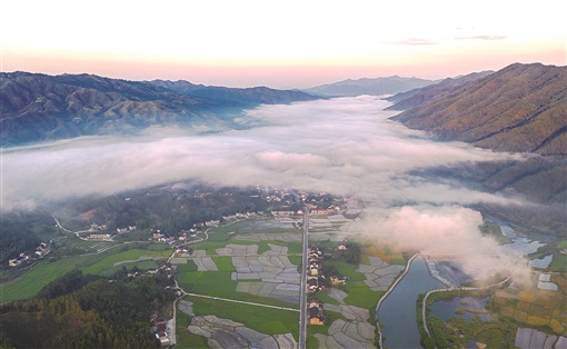 7月24日,浏阳市小河乡出现平流雾景观,天接云涛,雾气涌动,山峦、田园、村庄在雾气中若隐若现,美不胜收。近年,浏阳市坚持绿色发展,守护青山绿水,为百姓打造美丽生态家园。湖南日报全媒体记者 辜鹏博 摄