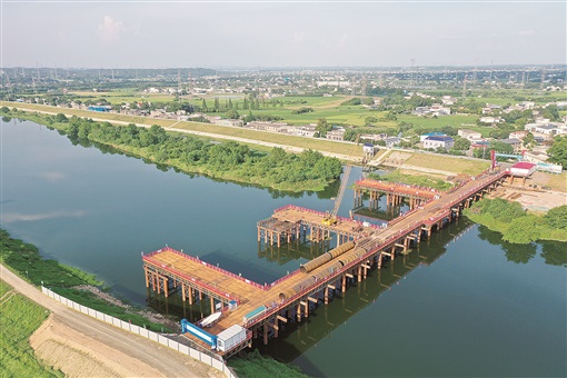 7月24日,长沙县金安大道项目一期工程捞刀河大桥施工现场,主栈桥和3座支栈桥施工已完成,正在搭建钻孔平台,为主桥施工做准备。金安大道项目作为长沙县“东拓西融”战略的东西向通道,全长约2.9km,全线设大桥2座,涵洞8道,预计2024年底可实现通车。