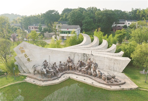 7月31日,清溪村印象广场上的喜庆丰收群雕。 湖南日报全媒体记者 傅聪 李健 摄影报道