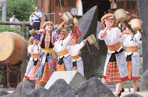 8月6日,隆回县虎形山瑶族乡崇木凼村,瑶族同胞与游客一起载歌载舞欢度瑶族传统佳节“讨僚皈”。“讨僚皈”是花瑶同胞最隆重的传统节日之一,沿袭至今已有上千年历史,2009年入选湖南省非物质文化遗产。 滕治中 摄
