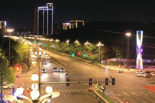 8月13日傍晚,中建五局总承包公司市政分公司桐梓坡路项目全线路灯亮灯,以崭新的形象迎四方宾客。
