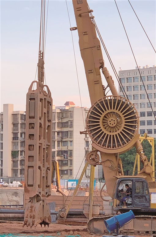 8月15日7时许,地铁建设者在长沙市轨道交通7号线砂子塘站工地忙碌作业。近段时间,长沙高温天气持续,地铁各在建工地通过加强安全教育、合理安排作业时间、高温时段不安排露天和高处作业、配齐防暑降温物资等措施,确保施工安全。湖南日报全媒体记者 徐行 摄