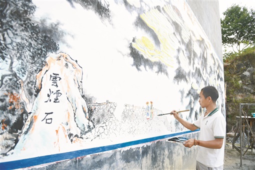 8月19日,溆浦县葛竹坪镇山背村,村民在手绘“文化墙”。近年来,该县结合乡村振兴、乡村文旅建设,在美化、亮化新农村上下功夫,让“文化墙”展现美丽乡村新风貌。