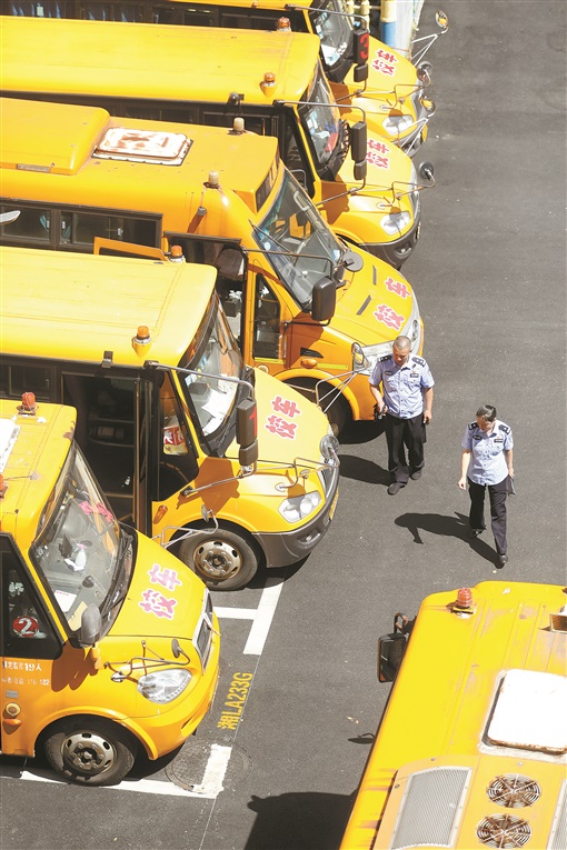 8月26日,资兴市公安局交警大队民警在对校车进行安全检查。秋季开学在即,该市开展校车安全专项检查,通过检查校车的安全性能、司机驾驶资质、标志标牌、安全设备等情况,及时消除安全隐患,确保校车安全运行。朱孝荣 李科 摄影报道