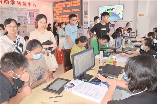 8月29日,一些大学生及家长在隆回县学生资助管理中心办理贷款。今年暑假,该县有两千余名大学生办理了贷款手续。大学本科生每生每年可贷款1.2万元,研究生每生每年可贷款1.6万元,读书期间国家补贴利息。