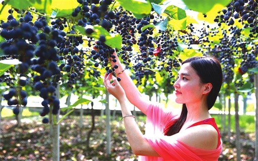 目前,全县刺葡萄种植面积达5.2万亩,占中国南方的三分之一,总产量近12万吨,总产值超6亿元,为果农增收3.8亿元,形成了集葡萄种植、鲜果售卖、葡萄酒酿造、葡萄深加工、葡萄采摘休闲观光游于一体的“甜蜜产业链”,当地群众也成为了“湘珍珠”刺葡萄致富的最佳代言人。