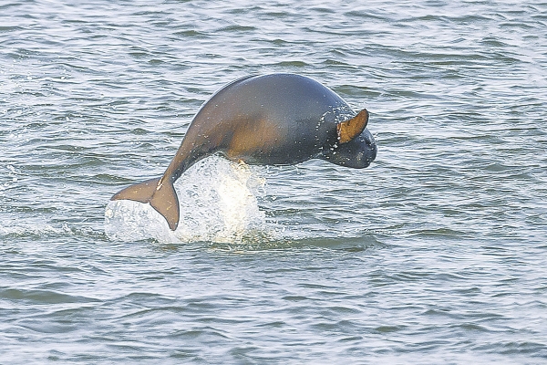 初秋的阳光还发烫,暖和的水温令江豚更加活跃,常在带着特有咸腥、混合水草清新的湖风里,成群结队集体围猎,用尾翼搅浑湖水,构建一个越缩越小的包围圈,把鱼群驱赶至中心,惊恐的鱼便飞进了它们张开的嘴里。
