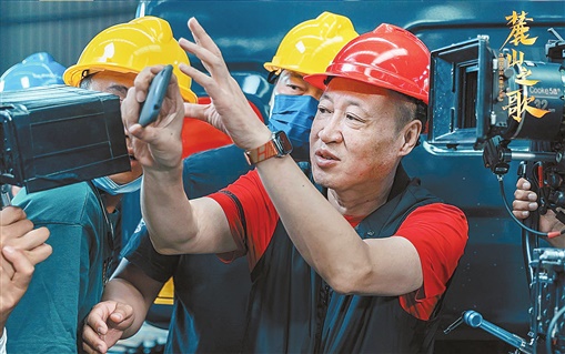 毛卫宁:工业是有温度的,如何表现好机器是一个难题。我们必须对机器特别熟悉,对它有感情。开拍的前3天,我没有安排演员的戏,而是让剧组先拍各种机器,要把人与机器之间深情凝视的情感关系拍出来,让观众热爱我们的画面,而且能看得懂。比如两个人在工厂讲话,我们也要去表达机器在自然中的比例、作用和带来的震撼。