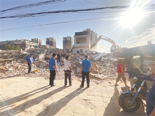 9月8日,汉寿县太子庙镇,工作人员在拆除当地最后一栋经营性自建房危房。5月以来,该镇成立工作专班,全面摸排、清查辖区上万栋自建房,对经营性自建房展开专项整治。截至目前,该镇共拆除危旧房屋128栋,建筑面积约37000平方米。黄文波 摄