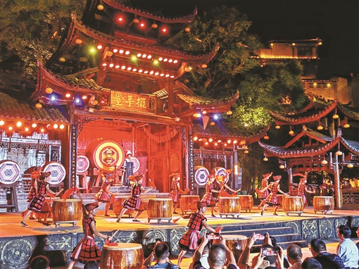 9月11日晚,永顺县芙蓉镇景区,游客在欣赏民俗表演。今年,芙蓉镇不断丰富文旅业态,打造“夜经济”产业链条,山水光影秀、民俗文化展演、各地风味美食、特色民宿等一应俱全,为八方游客奉上了丰富的文化“夜宴”。