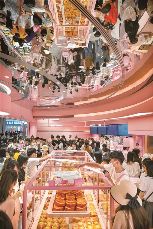 9月11日,游客在长沙市国金中心地下商场内的一家网红店选购商品。中秋小长假期间,长沙消费市场活力涌动,人气火热。