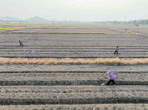9月14日,道县清塘镇楼田村,农民在水稻收割后的农田里整地起垄,准备种植蔬菜。近年来,该县积极探索农业发展新业态,引导农民实行“水稻+蔬菜”水旱轮作模式,促产增收。蒋克青 摄