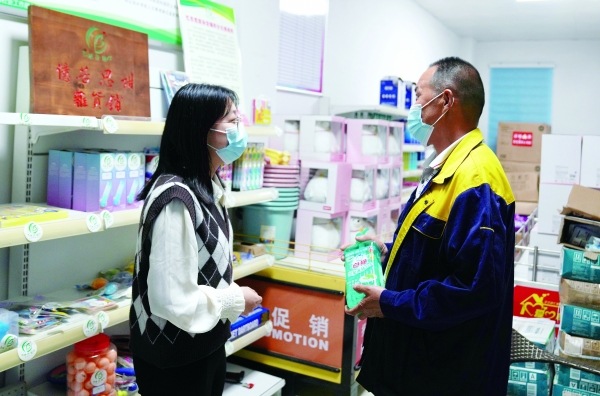 “一支牙膏10积分,一桶食用油30积分,食盐两袋5积分……”超市管理员向前来兑换物品的搬迁户补家培介绍道。“我参加社区的文明劝导、疫情防控守卡,每次都有积分。”在社区的“爱心积分超市”,补家培用积分兑换了洗洁精。