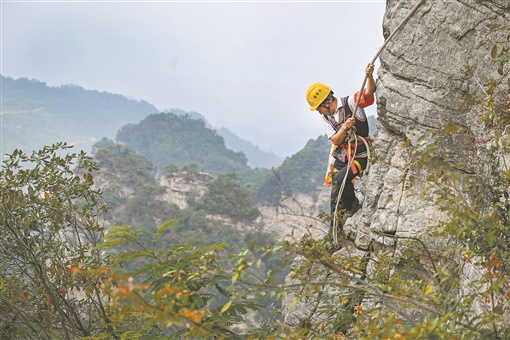 在张家界武陵源核心景区,有这么一群人:有的日行万步,以脚步丈量着景区;有的高空巡检,守护索道、电梯安全;有的飞檐走壁,捡拾垃圾;有的笑容满面,热情服务……