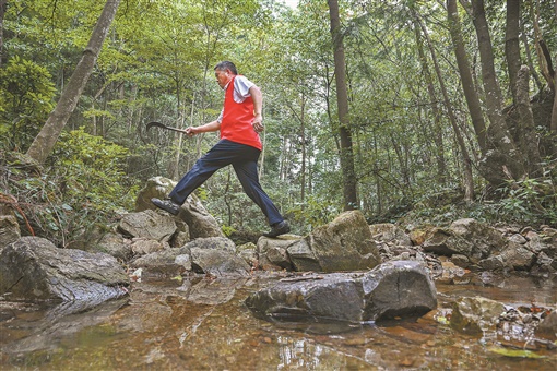 9月14日,张家界国家森林公园花溪裕护林点,护林员彭仕文在徒步巡查。30年来,他就像森林中的“隐形人”,与大山为伍,与森林为伴,用脚步丈量着山林。 |