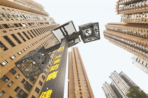 9月23日,长沙市北辰三角洲E4区,楼栋间安装有太阳能灭蚊灯。近年来,长沙市坚持预防为主、标本兼治,持续部署开展病媒生物防制设施建设工作,累计建成示范小区300余个。