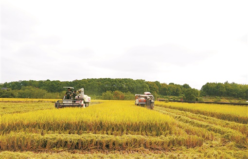 左图:10月8日,祁东县鸟江镇湘一村陈家组,农机手驾驶大型机械在田间收割晚稻。寒露时节,当地纷纷调集农机,及时抢收晚稻。