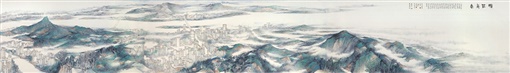 “古”“今”统一,把“今”看得更重要。创作表现空旷水景和远处山峦,呈现疏简灵动、清旷幽远的古意。同时站在新征程、寄予新期望,把感时伤怀、清冷逍遥的潇湘美学意象,转化成波澜壮阔的盛世正大气象,再现生态文明建设成果,形成“只此青绿”的整体风格,画出新高度。《沅水奔流韵潇湘》聚焦“矮寨不矮,时代标高”的矮寨大桥,描画“新时代红色地标”十八洞村,讴歌“钟灵毓秀新时代”。《澧水泱泱》呈现“上黄石寨,登天子山,看荷花机场,迎五洲宾客”的场景,彰显“仙境张家界,峰迷全世界”的澧浦雄姿。这部潇湘山水“教科书”创造了可留给历史、未来的美术图式,为潇湘山水在新时代不断再生提供启迪。