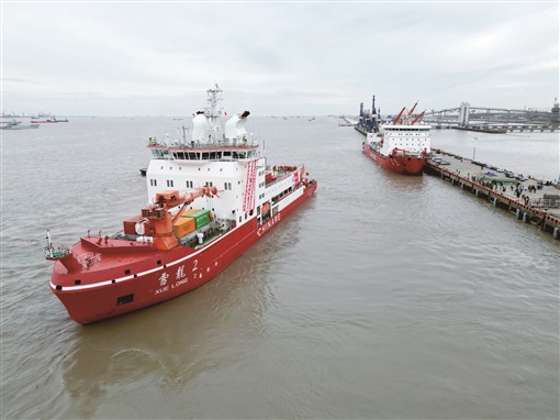 10月26日,中国第39次南极科学考察队首批队员乘坐“雪龙2”号极地科学考察船,从位于上海的中国极地考察国内基地码头出征,奔赴南极执行科学考察任务。