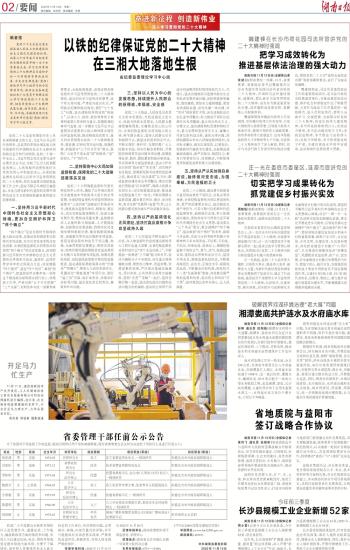 以铁的纪律保证党的二十大精神在三湘大地落地生根