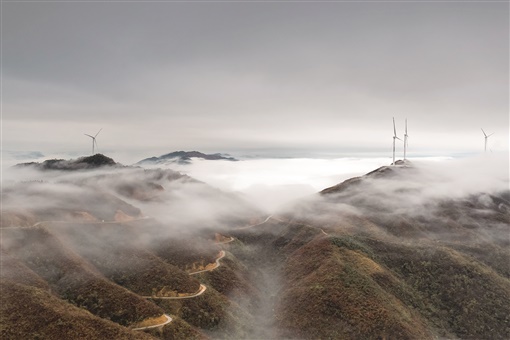 11月20日,通道侗族自治县万佛山镇上洞风电场,风机与云雾、山峦勾画出一幅自然和谐画卷。近年来,该县加快开发利用风能资源,形成了集风力发电、观光旅游为一体的风电长廊,带动“产业链、生态链、就业链”快速发展,赋能乡村振兴。 刘强 申国贵 摄影报道