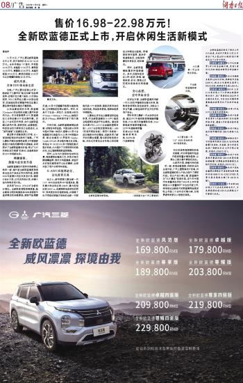 售价16.98-22.98万元! 全新欧蓝德正式上市,开启休闲生活新模式