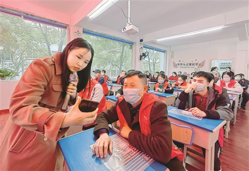 11月22日,通道侗族自治县欣荣技能培训学校,老师在给农村残疾人讲授手机拍摄技巧、直播营销策划等知识。连日来,该县残联在11个乡镇举办了12期农村残疾人电商直播技能培训班,为153名农村残疾人提供技术指导、直播设备等,大力扶持他们创业就业。 刘强 左茜 摄影报道