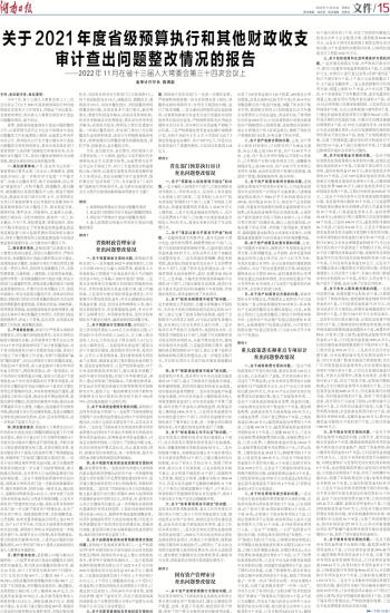 关于2021年度省级预算执行和其他财政收支审计查出问题整改情况的报告