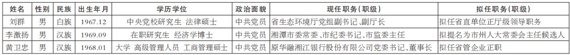 为了加强对干部选拔工作的监督,提高识别和任用干部的准确程度,现对省委常委会会议研究决定的下列拟任人选进行任前公示: