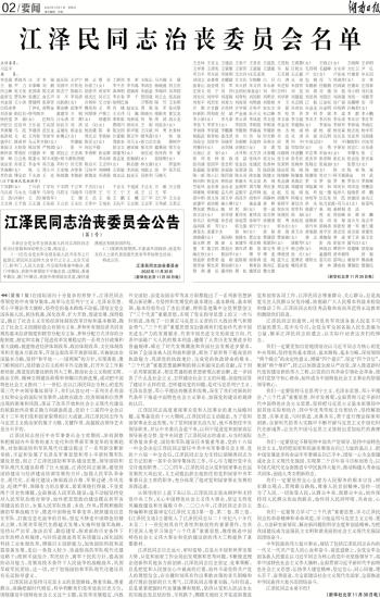 江泽民同志治丧委员会公告