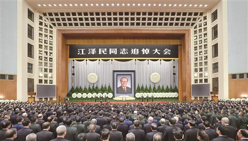 江泽民同志同我们永别了。他的英名、业绩、思想、风范将永载史册,世世代代铭刻在人民心中。全党全军全国各族人民要更加紧密地团结在党中央周围,踔厉奋发、勇毅前行,为全面建设社会主义现代化国家、全面推进中华民族伟大复兴而团结奋斗