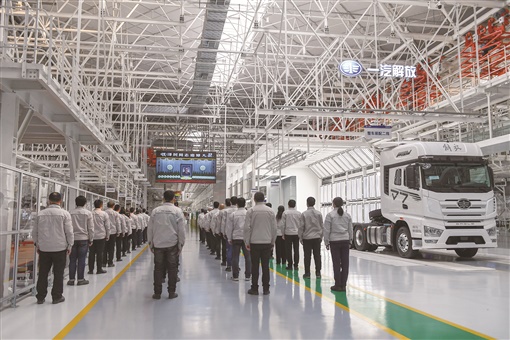 这是在吉林长春的一汽解放工厂车间,工人们收看江泽民同志追悼大会直播。 |