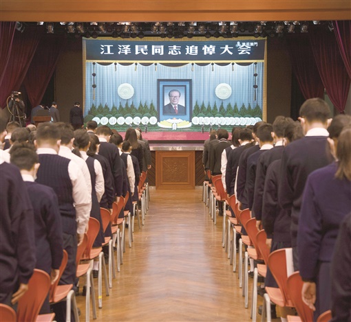 这是在澳门濠江中学,师生肃立默哀。 |