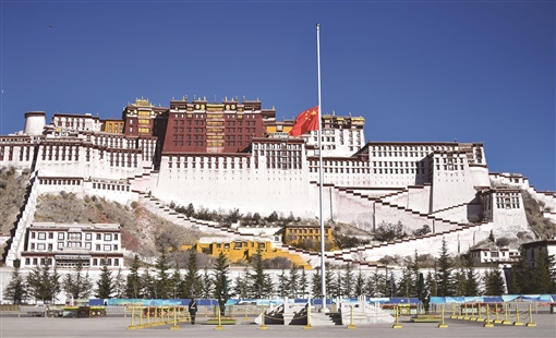 这是西藏拉萨布达拉宫广场下半旗志哀。 |