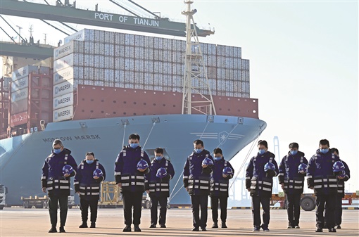 这是在天津港太平洋国际集装箱码头,职工肃立默哀。 |