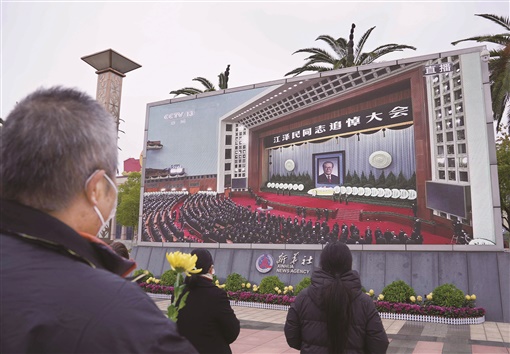 这是在江西南昌八一广场,群众收看江泽民同志追悼大会直播。 |