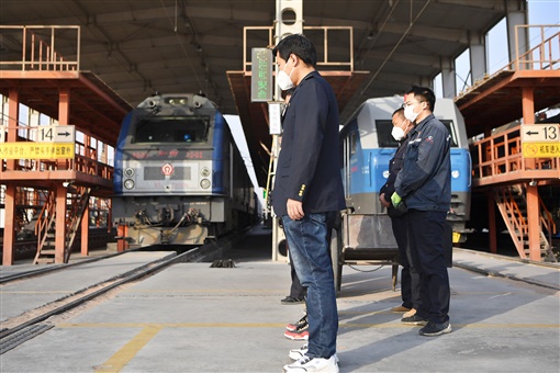 这是在中国铁路兰州局集团有限公司兰州西机务段东整备车间,机车鸣笛,干部职工肃立默哀。 |