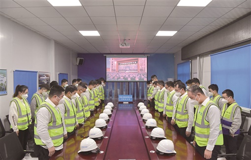 这是在河南郑州中原数字产业园(西园)项目工地,中建三局的建设者肃立默哀。 |
