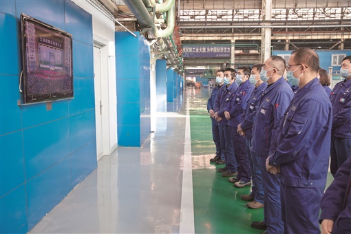 这是在哈电集团哈尔滨电机厂有限责任公司,职工收看江泽民同志追悼大会直播。 |