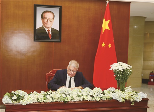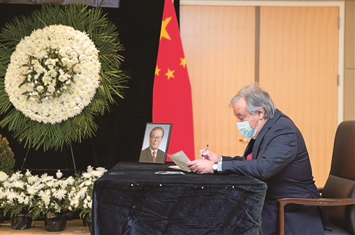 十二月五日,联合国秘书长古特雷斯在中国常驻联合国代表团驻地吊唁江泽民同志。 |