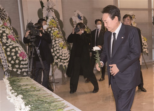 12月2日,韩国总统尹锡悦在中国驻韩国大使馆吊唁江泽民同志。 |