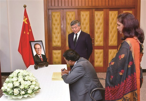 12月2日,斯里兰卡总理古纳瓦德纳在中国驻斯里兰卡大使馆吊唁江泽民同志。 |